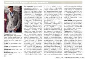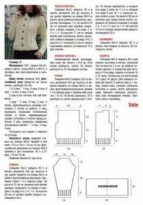 - Через 41 см от начала убавьте в каждом четном Р по три петли два раза, один раз по 1-ой, в каждом 4 два раза по 1-ой петле. Это проймы.