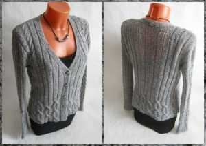 - Втачайте рукава, сделайте боковые швы, пришейте пуговицы и стильная женская кофта спицами готова!