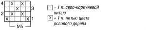 - Для спинки наберите 95 (103) петель пряжей розового цвета и вяжите на спицах №3 два ряда (Р) изнаночной гладью, а следующие 28 – жаккардом со схемы, но уже на спицах №3,5.