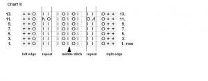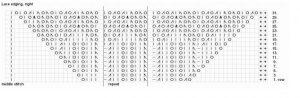 Мы видим, что с одной стороны образовались зубчатый край, теперь нужно связать такую же кайму на другой стороне. Схема узора та же, а вот подробное описание рельефа.