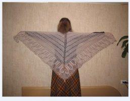 Подробное описание научит начинающих вязальщиц азам создания бактусов спицами. Но не все подобные шарфы можно связать, придерживаясь данного принципа. Некоторые модели вяжутся не с «крыла», а со среднего угла. Равномерно прибавляя петли, симметрично в обе стороны, аксессуар будет расширяться. Такую косынку можно оформить красивой ажурной каймой или бахромой.