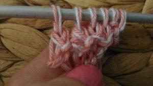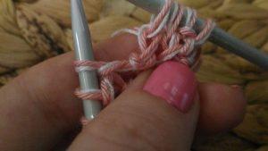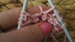 В начале следующего Р делаем прибавление (пр) таким образом: сначала вводим спицу за переднюю стенку, и вытягиваем петельку, а затем вводим за заднюю стенку, и снова вытягиваем петлю. Так из одной п. мы получаем две.
