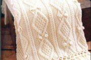 Размер пледа составляет 120 на 150 см. вам потребуются нити из хлопка и акрила, белого и серого цвета. Спицы используются под номером № 5,5.