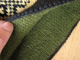 Подкладка вяжется с набора ста десяти звеньев на спицы № 4. Соедините петли в круг и отметьте маркером начало этого круга. Далее вяжите лиц. гладь, протяженностью восемь сантиметров. После этого переходите на размер инструмента № 4,5 и выполните один круг пряжей основного оттенка. Следующая полоса будет вязаться изнаночными петельками.