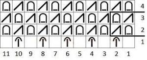 - 1р. – одна изн. п., 1 л. п., 2 лиц. п. провязанные совместно и повторение до самого конца полосы;