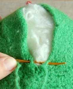 - Готовую елочку следует плотно набить синтепоном и выполнить оставленным хвостиком маленький аккуратный шов.