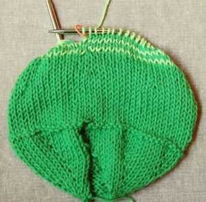 - В каждом лиц. р. из одной п. вывязываем по 2, за переднюю и заднюю стенки. Таким образом, выполняем 17 р. и на спицах должно получиться 72 п.