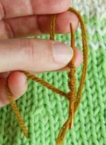 - Набираем на спицы 4 п. и оставляем длинный хвостик для сшивания донышка.