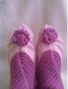 Красиво выглядят тапочки, украшенные различными вязанными цветочками. Сделать их можно и крючком: