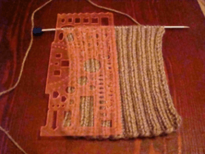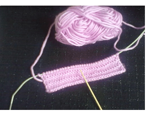 Далее – меняем рисунок на лицевую гладь. Заканчиваем наш прямоугольник опять 4-мя рядами платочного рисунка. Это основная заготовка для нашего изделия: