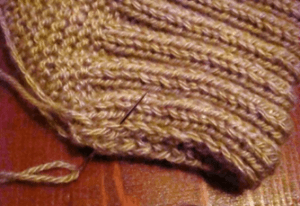 Берем заранее припасенную иголку и начинаем сшивать изделие по краям. Как видно из фото ниже, сшивать будем именно там, где находится резинка: