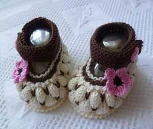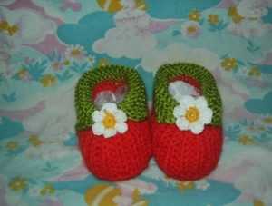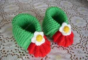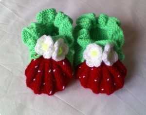 Для девочек спицами можно связать прекрасные пинетки ягодки.