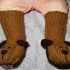 - Отворачиваем верх резинки, пришиваем уши и пинетки в форме собачек готовы.