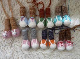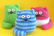 Еще одна игрушка так же может стать прекрасным подарком к дню рождения. Она пополнит коллекцию вашего малыша. Приготовьте для работы меланжевую пряжу, две бусинки, спицы и крючок под номером № 2 и синтепон.