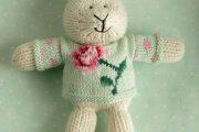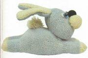 Для ушек нужна белая нить. Из нее необходимо набрать восемь звеньев и вязать лиц. гл. в количестве 8 р. прямо, а потом делать уменьшения с двух сторон каждого второго ряда по одной п. три раза. Оранжевыми нитками свяжите вторую сторону ушка аналогично. Хвост нужно вязать такими же нитками, как и голову игрушки. Нанизывайте 20 звеньев и вяжите двадцать четыре прямые полосы. После этого введите в работу белый цвет, делая уменьшения с двух сторон в каждом втором р. по одной п. до тех пор, пока у вас не останется всего лишь четыре штучки, которые следует закрыть. Задние лапки вяжутся из 12 р. лиц. глади, предварительно набрав 10 п. Передние вяжут из четырнадцати полос лиц. глади, начав работу с восьми петлиц.