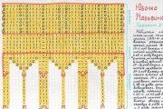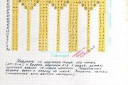Чтобы связать спицами планку, вам необходимо набрать сорок три петли и вязать пять рядов «путанки». После этого выполните 1 р. лицевой глади, а потом еще десять сантиметров основным узором. В конце планка пришивается к юбке.