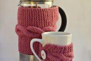 Этот замечательный и забавный чехол для чашки спицами, обязательно поднимет праздничное настроение всем членам вашей семьи, которые соберутся за чаепитием и получат такие изделия в подарок на Крещение Господне.