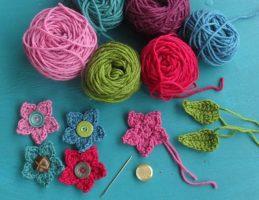 Элементы декора, можно связать крючком. Количество,формы и цвет цветков можете придумать сами.