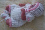 Для того, чтобы выполнить рисунок замочек, количество набранных П должно делиться на пять, плюс две единицы и еще две кромочные. Для первого (Р) замочка вяжем П в такой последовательности. Первые две штуки должны быть изнаночные (ИП), потом 3 лицевые (ЛП), и эти четыре единицы составляют раппорт первого Р. В конце Р вяжем две последние изнаночные. Второй Р начнем с вязания двух ЛП, потом выполним три ИП, что составляет раппорт второго ряда. Заканчиваем его двумя лицевыми петлями. Третий Р рисунка самый сложный, и вяжется он особенным способом. Две единицы изнаночные, 3 лицевые, затем третью перекидывают влево на две петли. Закончим ряд двумя ИП. Четвертый Р завершает раппорт по вертикали. Для него вяжут спицами две лицевые петли, одну изнаночную, накид, еще одну ИП, и две ЛП. Чтобы продолжить узор замочек, необходимо повторять раппорт с первого ряда до тех пор, пока не закончится вязание.