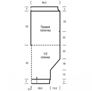Никаких швов модель не подразумеваем – она вяжется единым полотном. Внимательно рассмотрите выкройку на рисунке ниже.