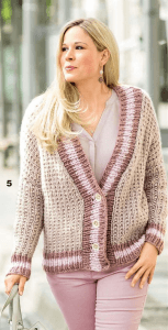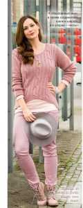 Еще одна модель кофты выполнена модным узором из кос, которые будут надежно скрывать небольшие недостатки любой фигуры. Пряжа использована пастельно-розового цвета, а выкройка сделана с ассиметричной нижней частью и закругленными боковыми швами. Такая интересная разработка также поможет полным женщинам выглядеть красиво и элегантно:
