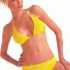 Чтобы изготовить спицами такой купальник, потребуется 200 граммов желтой хлопковой пряжи (282 метра в 250 граммах). Рукоделие выполняется круговыми спицами № 2. Для оформления купальника приготовьте два пластмассовых колечка желтого оттенка, а также поролоновые формы для бюстгальтера.