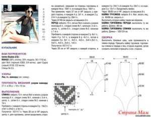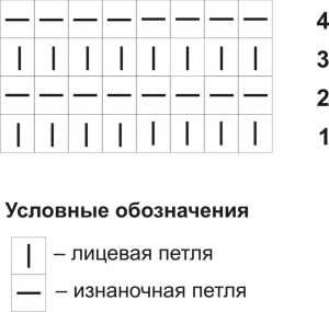 - Сделав набор П, продолжим вязание узором по схеме 1. Вяжем полотно на высоту 12 сантиметров (см) от наборного ряда, после чего закроем П последнего ряда.