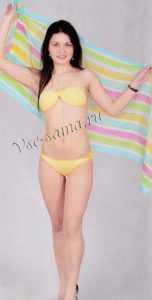 Сегодня этой проблемы не существует, потому что в продаже есть нитки, которые не линяют, не выгорают на ярком солнце, и отлично сидят. Изделия из такой высококачественной пряжи не подвержены деформации. Присутствие эластичной составляющей позволяет вязаному спицами купальнику отлично сидеть на теле.