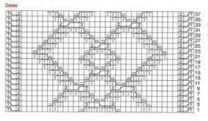 Основной узор рельефного орнамента представлен на схеме. Это оригинальные жгуты, прилагающие друг к другу и образующие теплое, непросвечивающее полотно.