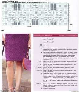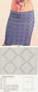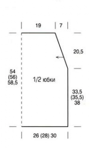 - До середины юбки необходимо связать 26-30 см и далее симметрично первой половинке убавить скос бедра.