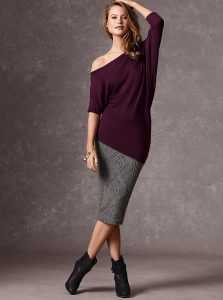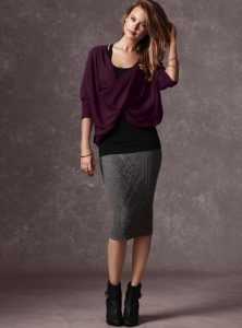 - Фасон карандаш сочетается с приталенными жакетами и джемперами. Как дополнение, укороченный рукав подчеркивается изящество фигуры. В таком образе можно ходить на встречи с подругами и на романтическое свидание.