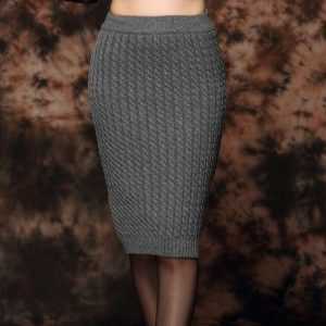 Шикарная серая юбка с полосой аранов подчеркивает бедра мелким жемчужным узором.