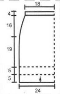 - Согласно выкройке на высоте 29 см начинается убавление.