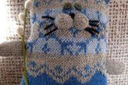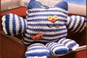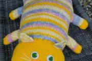Для того, чтобы связать спицами туловище котика для подушки на День смеха, нужно набрать спицами десять п. и вязать основной узор, с равномерным прибавлением во всех вторых рядах по шесть п., до тех пор, пока у вас в итоге не сформируется семьдесят петелек. Дальше вязание идет напрямую до тридцать второго рядочка. Затем, можно начинать делать равномерные убавки во всех вторых р. по шесть п., пока в остатке у вас окажется десять п. Остаточные петельки стягиваются и донышко сшивается. Для того, чтобы окончательно сформировать туловище, возьмите синтепон и наполните им внутреннюю часть связанной заготовки подушки на День смеха.